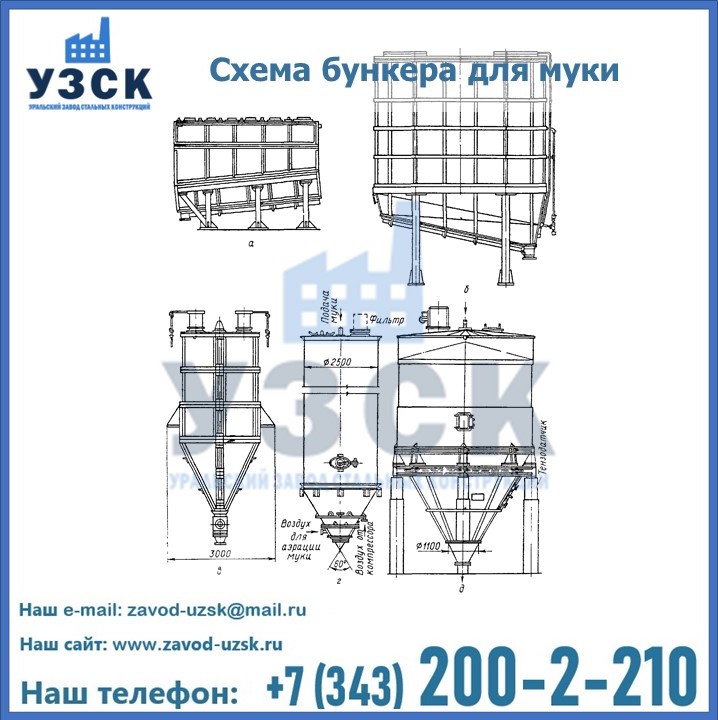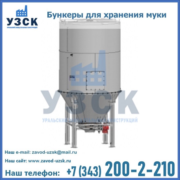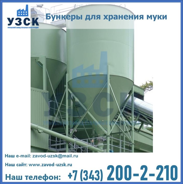 Завод «УЗСК» в Батайске проектирует, производит и поставляет целевое оборудование, в том числе, бункеры для хранения муки и прочих сыпучих материалов.