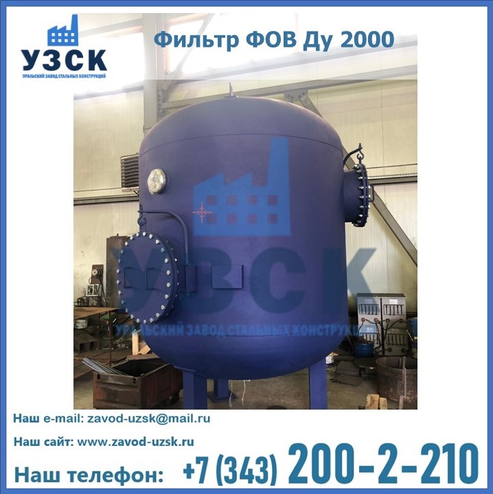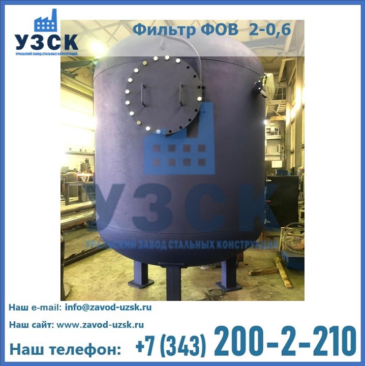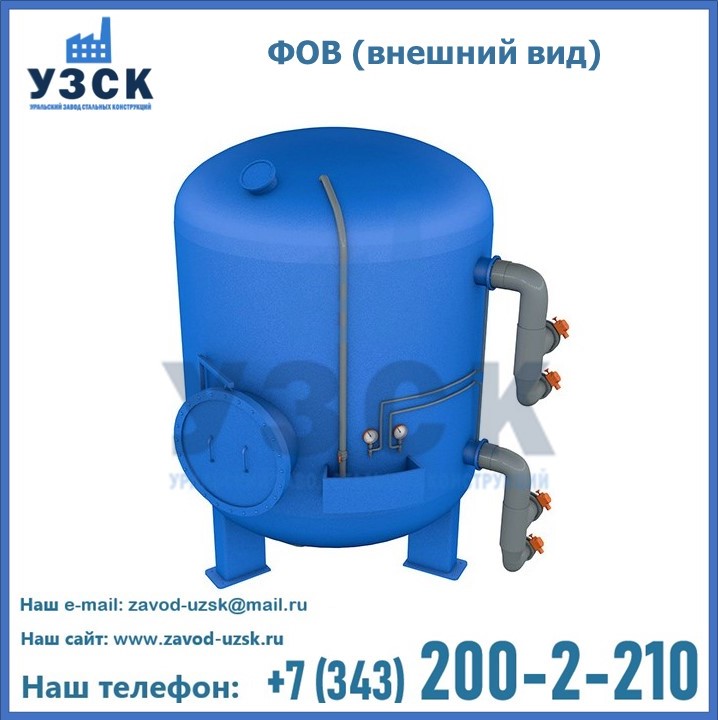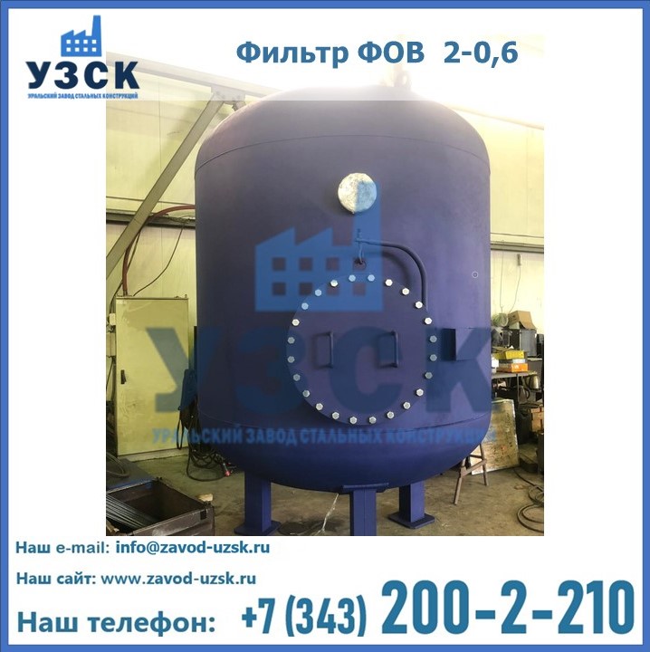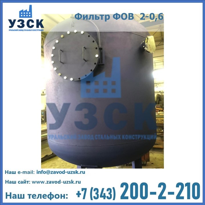 Удаление взвешенных веществ различного уровня дисперсности из рабочих жидкостей эффективно проводит фильтр осветлительный типа ФОВ (скорый или механический) — вертикально-цилиндрической формы установка, разработанная для систем водоподготовки различного класса. Оборудование представляет собой однокамерный агрегат для очистки воды рекомендованный для применения на станциях очистки стоков, в коммунальных котельных, на ТЭЦ, в промышленных отопительных системах и пр. Заказать производство ФОВ фильтров предлагает наш Уральский завод стальных конструкций в Батайске. У нас можно купить фильтрационное оборудование различного класса и типа, в том числе фильтры ФОВ из нержавеющей стали.