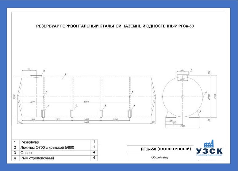 Описание стандартного резервуара РГС-50